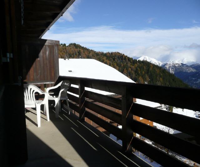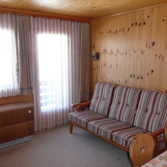 Im Wohnzimmer befinden sich zwei Klappbetten, Wandschränke, Eckbank mit direkter schöner Aussicht auf die Bergketten.