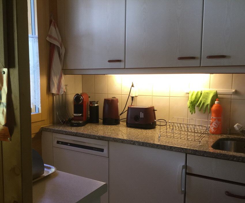 Die ganze Wohnung wird elektrisch mit Radiatoren beheizt. Jedes Zimmer kann individuell reguliert werden.