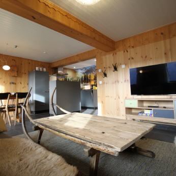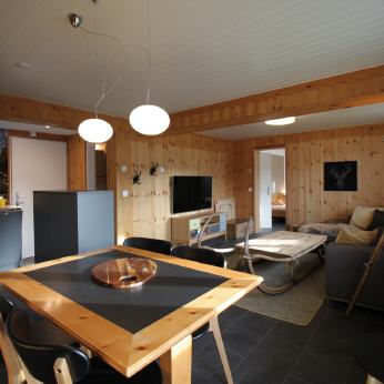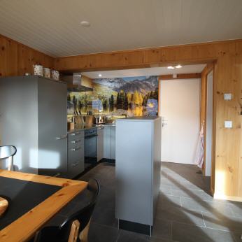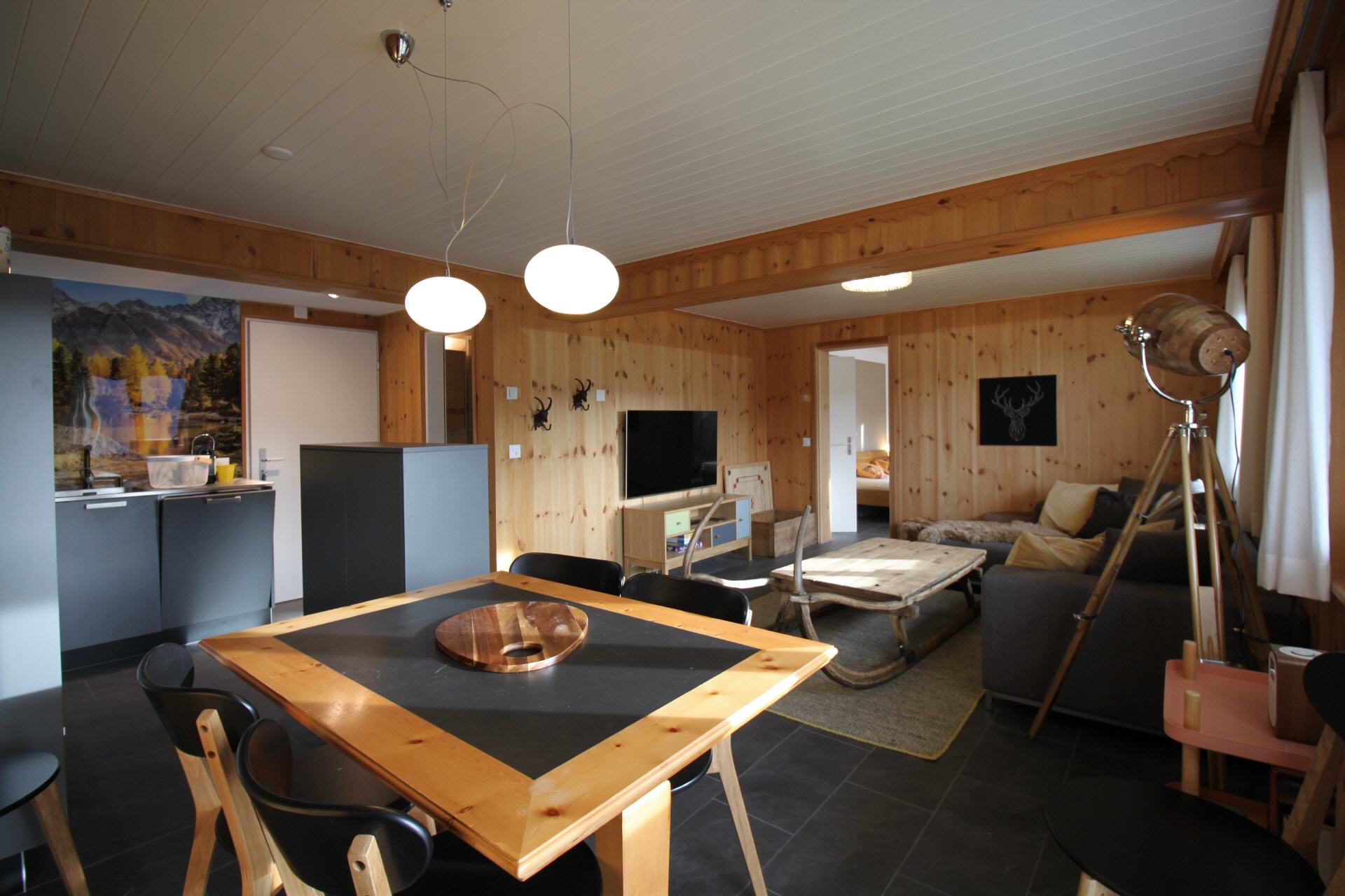 Das Gamma 02 ist eine moderne 5.5-Zimmerwohnung von ca. 80 m2; für 6 Personen. Die Wohnung befindet sich im Erdgeschoss mit Sitzplatz Südausrichtung und verfügt über eine wunderbare Aussicht. Es sind 3 separate Schlafzimmer, 2 Badezimmer mit Dusche, ein grosser Wohnraum mit offener Küche sowie ein Esszimmer vorhanden. Die moderne Küche ist gut ausgerüstet unter anderem mit Abwaschmaschine, Kaffeemaschine (Nespresso), Wasserkocher, Toaster sowie Fondue- und Raclette-Geschirr. Die gesamte Wohnung verfügt über eine Bodenheizung. Zur Wohnung gehört zudem ein Gepäckaufbewahrungsraum mit Skischuh- oder Wanderschuhwärmer. Diverse Schlitten / Bobs, Sonnenschirm und Liegestühle sind vorhanden.