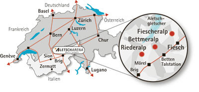 Die Bettmeralp ist verkehrsgünstig gelegen.